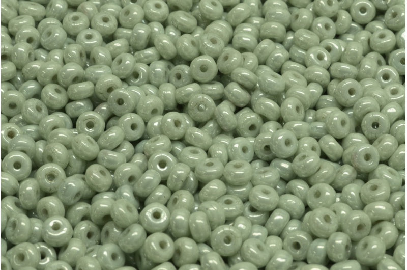 ロンデル・ドラックビーズ、ホワイトラスターグリーンフルコーティング(02010-14457)、ガラス、チェコ共和国