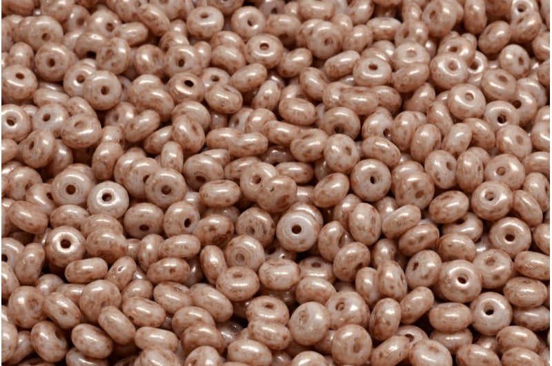 Rondelle Druck ビーズ、ホワイトオパールピンクベージュ (02020-34303)、ガラス、チェコ共和国