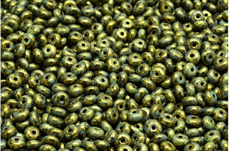 ロンデル・ドラックビーズ、ブラックゴールドラスタースポット(23980-65322)、ガラス、チェコ共和国