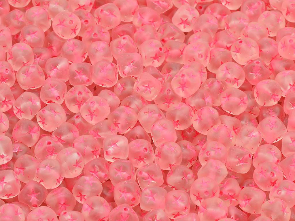星付きキューブビーズ、透明ピンクマットライトブルーライン入り(70120-84110-54308)、ガラス、チェコ共和国