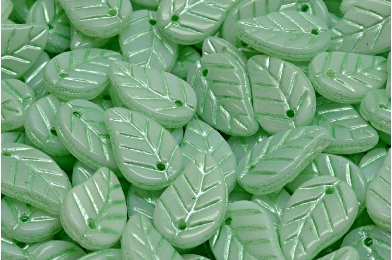 リーフペンダントビーズ、ホワイトグリーンライン(02010-54322)、ガラス、チェコ共和国
