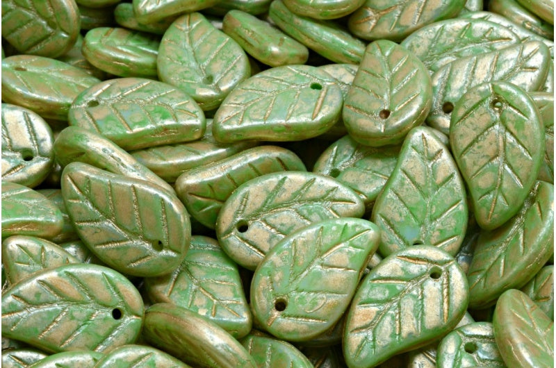 リーフペンダントビーズ、ホワイト 84310 86710 (02010-84310-86710)、ガラス、チェコ共和国