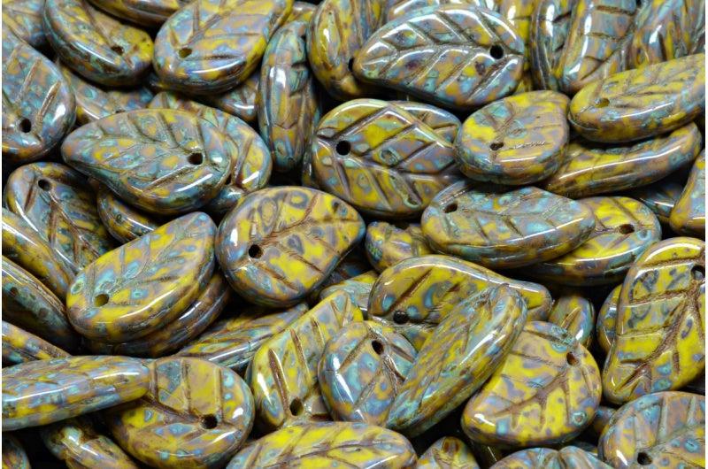 リーフペンダントビーズ、不透明グリーントラバーチン(53400-86800)、ガラス、チェコ共和国