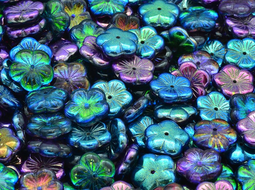 チェリーフラワービーズ、クリスタルマジックブルー(00030-95100)、ガラス、チェコ共和国