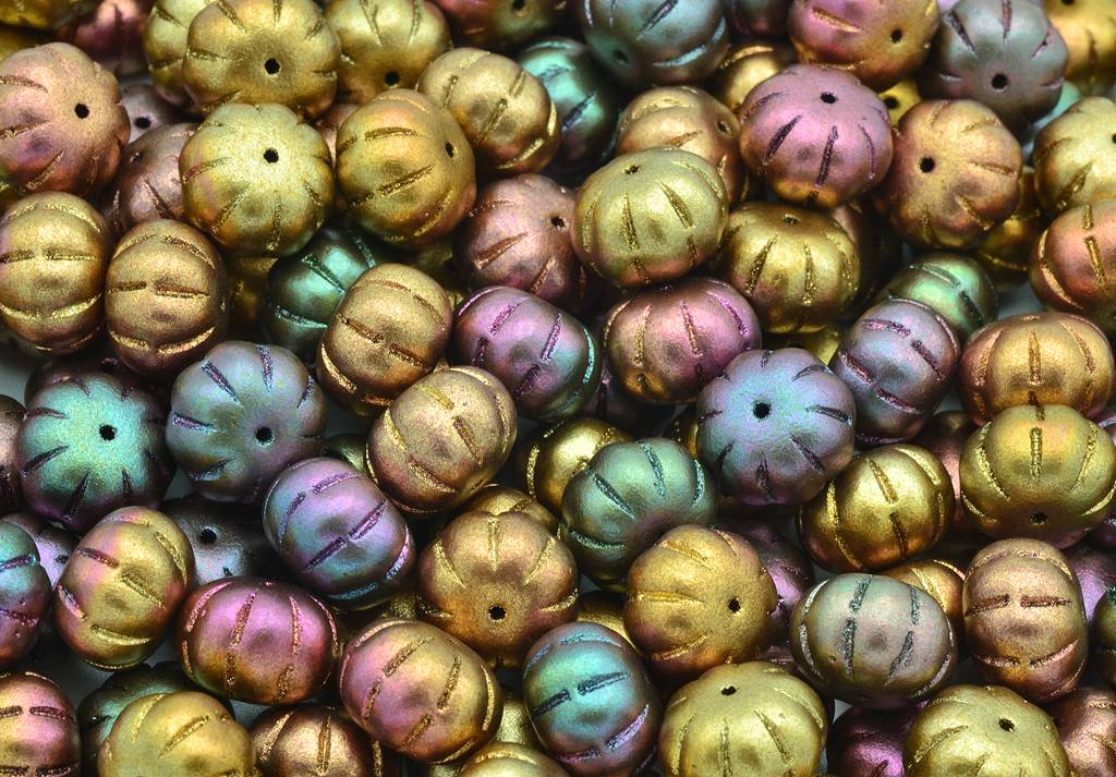 パンプキンビーズ、バイオレットレインボーメタリックアイリス(01640)、ガラス、チェコ共和国