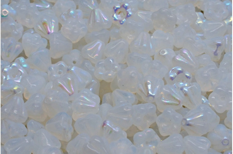 ベルフラワービーズ、オパールホワイトAb(01000-28701)、ガラス、チェコ共和国