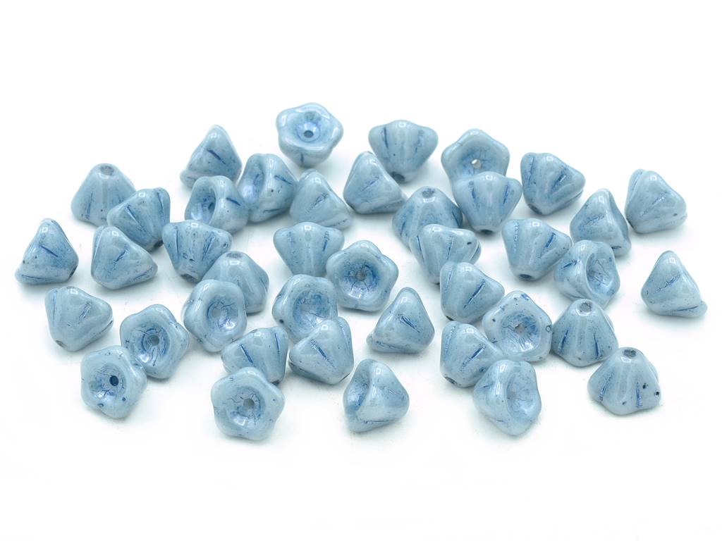 ベルフラワービーズ、チョークホワイトラスターブルーフルコーティング(03000-14464)、ガラス、チェコ共和国
