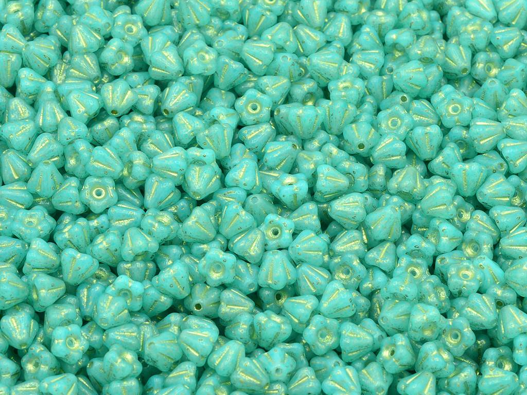 ベルフラワービーズ、チョークホワイトゴールドライン、ライトターコイズ(03000-54302-34309)、ガラス、チェコ共和国