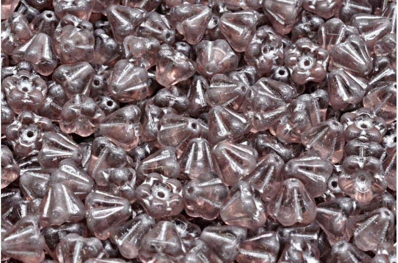ベルフラワービーズ、透明ライトアメジスト、シルバーライン(20030-54301)、ガラス、チェコ共和国