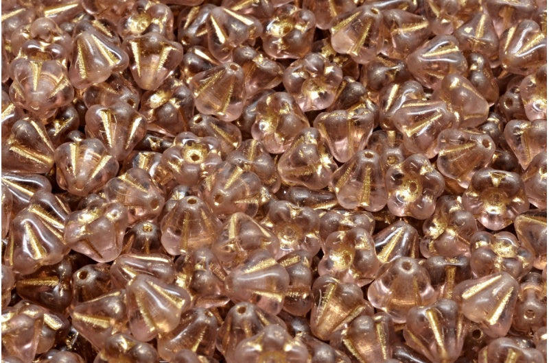ベルフラワービーズ、透明ライトアメジスト、ゴールドライン(20030-54302)、ガラス、チェコ共和国