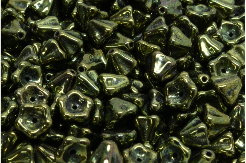 ベルフラワービーズ、ブラックラスターレッドフルコーティング(23980-14495)、ガラス、チェコ共和国