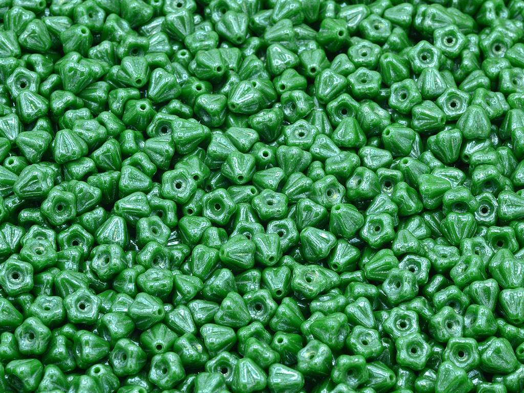 ベルフラワービーズ、不透明グリーンヘマタイト(53320-14400)、ガラス、チェコ共和国