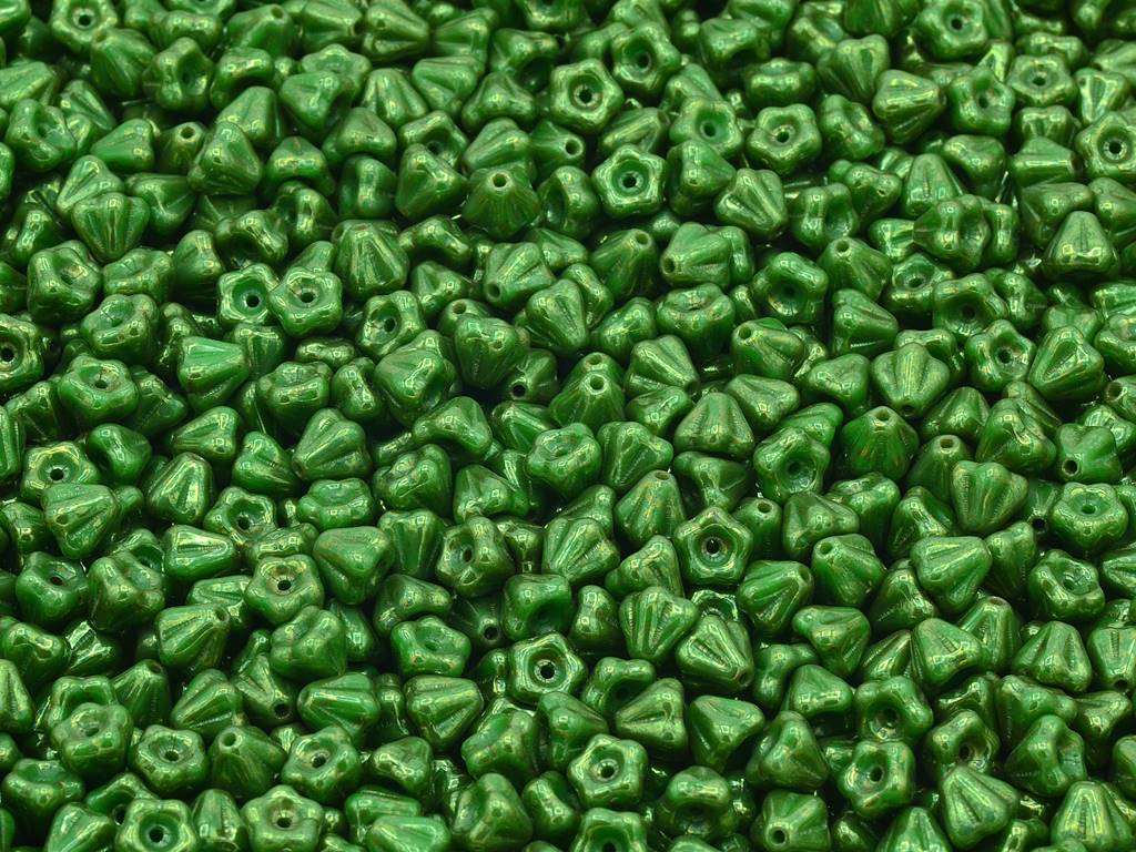 ベルフラワービーズ、不透明グリーンテラコッタレッド(53320-15495)、ガラス、チェコ共和国