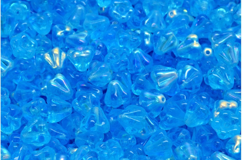 ベルフラワービーズ、透明アクアAb(60020-28701)、ガラス、チェコ共和国