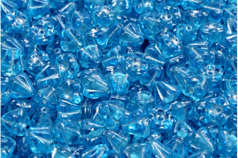 ベルフラワービーズ、透明アクアシルバーライン(60020-54301)、ガラス、チェコ共和国