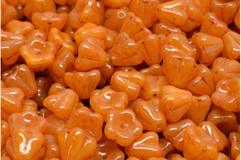 ベルフラワービーズ、イエローオパールミックスオレンジスポット(R0813-33302)、ガラス、チェコ共和国