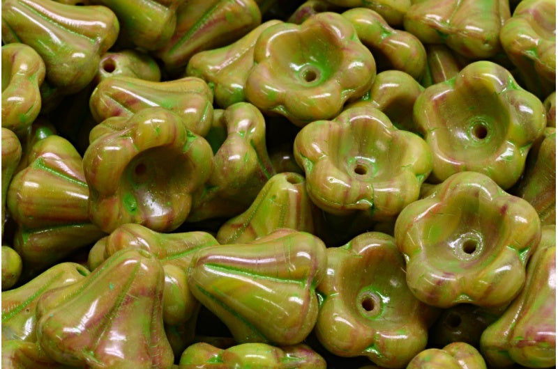 ベルフラワービーズ、R1234 グリーンスポット(R1234-33311)、ガラス、チェコ共和国