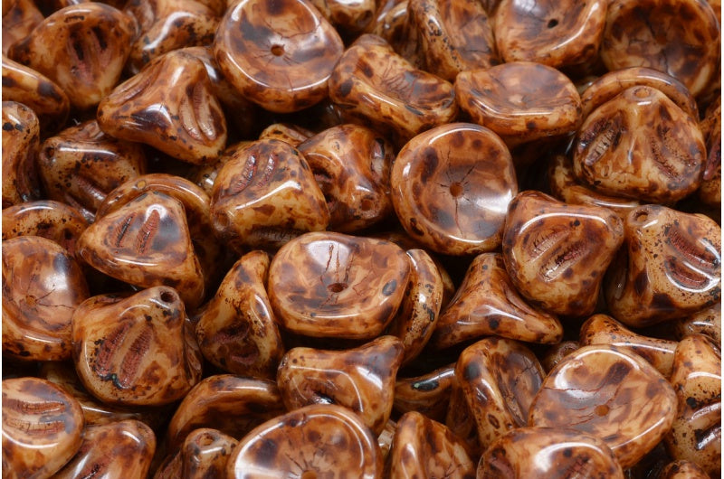 デイリリーフラワービーズ、ベージュトラバーチン(13020-86800)、ガラス、チェコ共和国