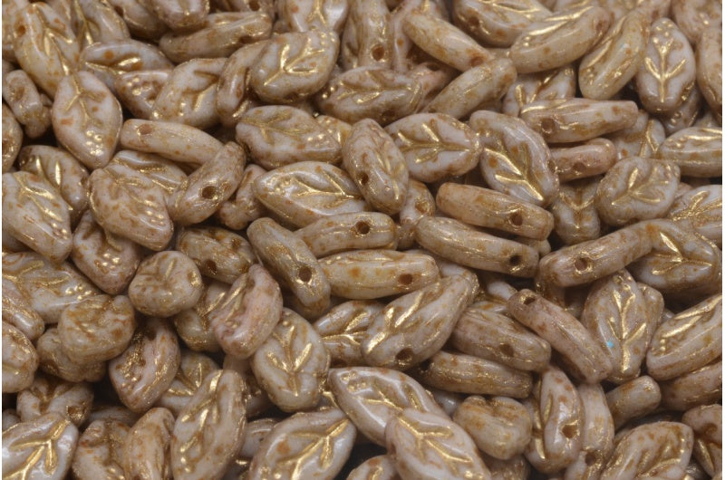 チェリーリーフビーズ、ホワイトトラバーチン、ゴールドライン(02010-86800-54302)、ガラス、チェコ共和国