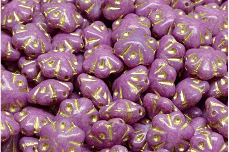 フォークロアフラワービーズ、白ピンク斑点金線(02010-33306-54302)、ガラス、チェコ共和国
