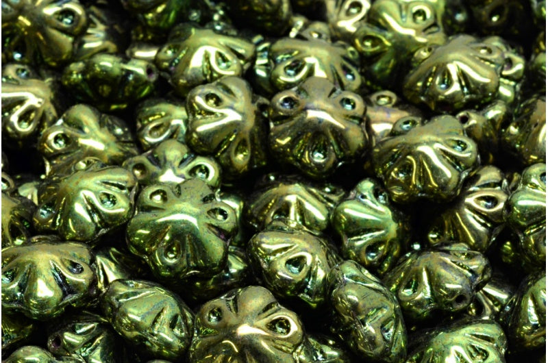 フォークロアフラワービーズ、ブラックラスターレッドフルコーティング(23980-14495)、ガラス、チェコ共和国