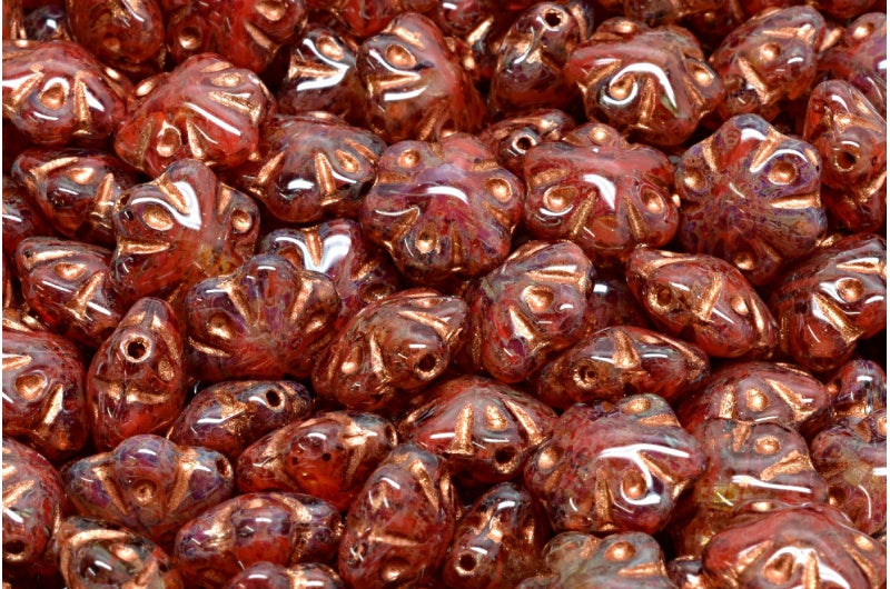 フォークロアフラワービーズ、ピンクトラバーチン銅張り(R0918-86800-54307)、ガラス、チェコ共和国
