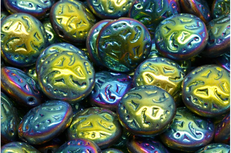 レンズ豆ビーズ(飾り付き)14mm、クリスタル 28103 (00030-28103)、ガラス、チェコ共和国