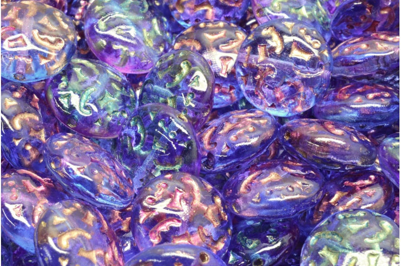 レンズ豆ビーズ(飾り付き)14mm、クリスタルゴールドライン、ブルーバイオレット(00030-54302-48002)、ガラス、チェコ共和国