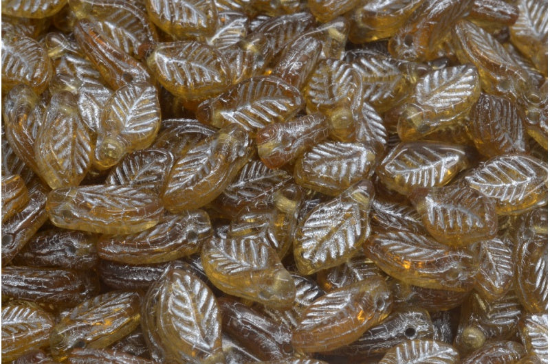 ベイリーフビーズ、透明オレンジ、シルバーライン(10060-54301)、ガラス、チェコ共和国