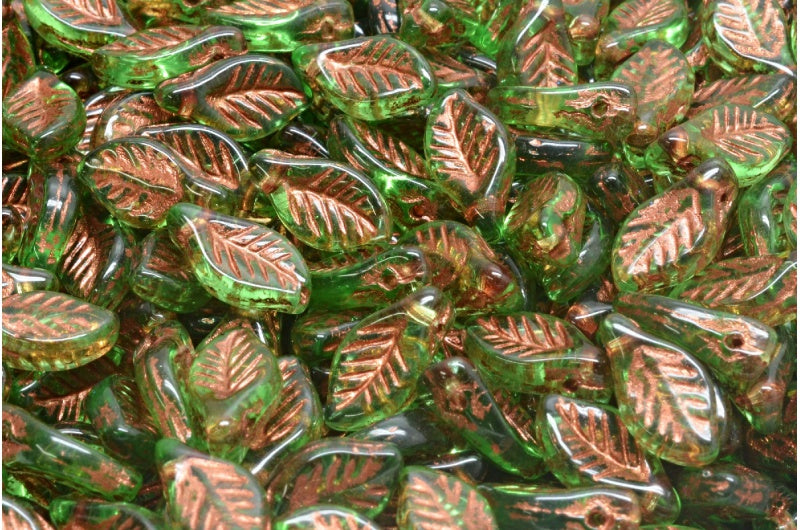 ベイリーフビーズ、透明グリーン銅線入り(50030-54319)、ガラス、チェコ共和国