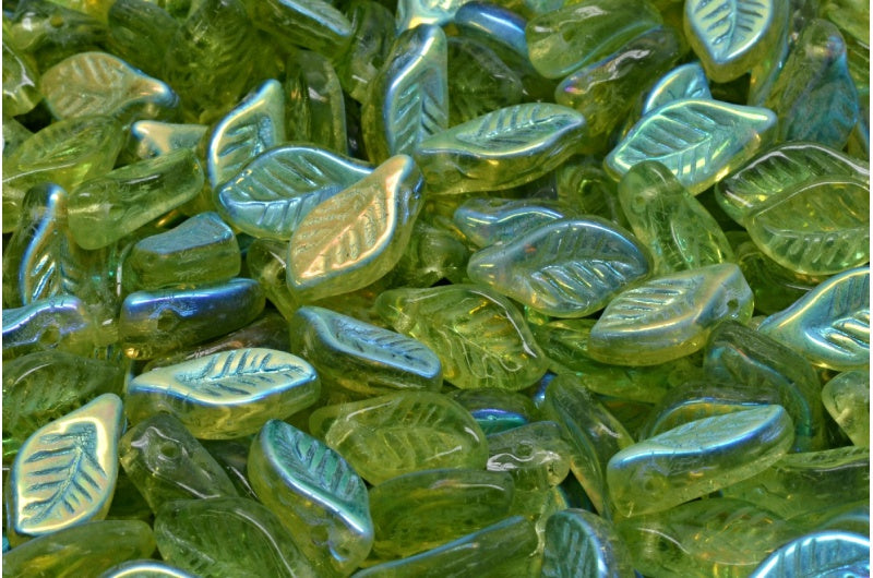 ベイリーフビーズ、透明グリーンAb(50200-28701)、ガラス、チェコ共和国