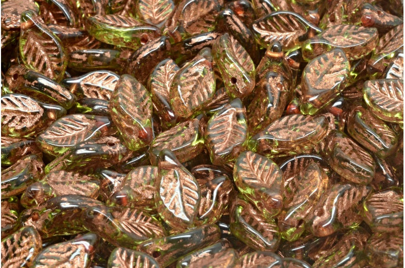ベイリーフビーズ、透明グリーン銅線入り(50200-54319)、ガラス、チェコ共和国