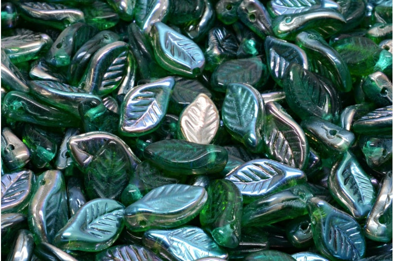 ベイリーフビーズ、透明グリーンエメラルド 22501 (50720-22501)、ガラス、チェコ共和国