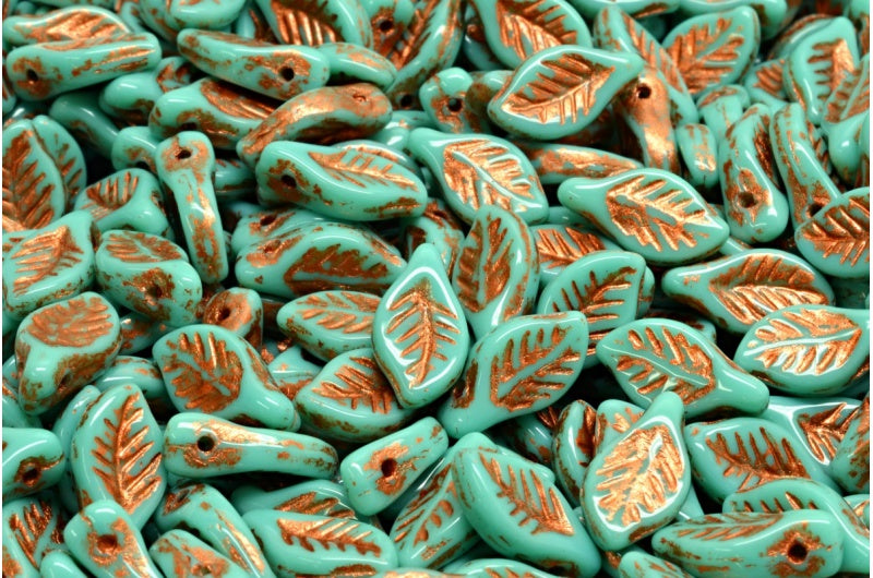 ベイリーフビーズ、ターコイズ銅線(63130-54319)、ガラス、チェコ共和国