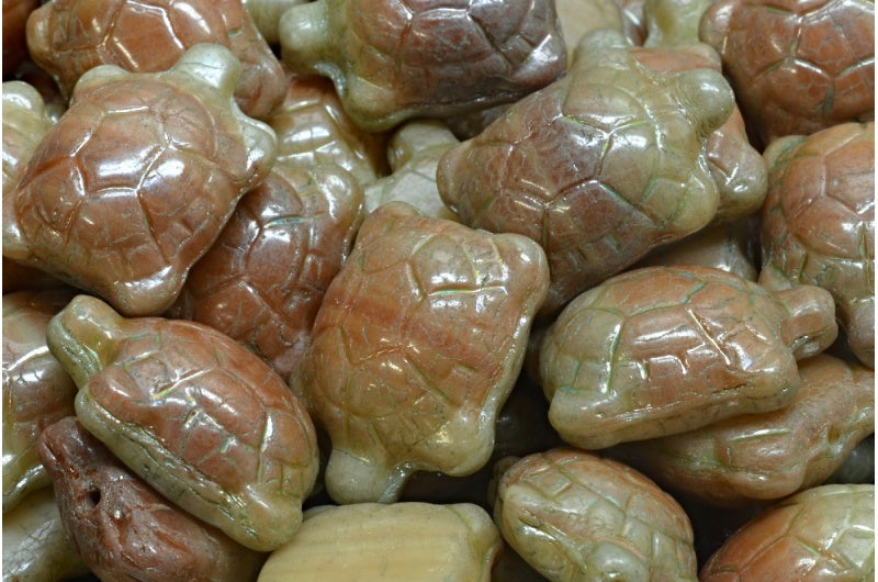 タートルビーズ、R1374 ラスターグリーン フルコーティング (R1374-14457)、ガラス、チェコ共和国