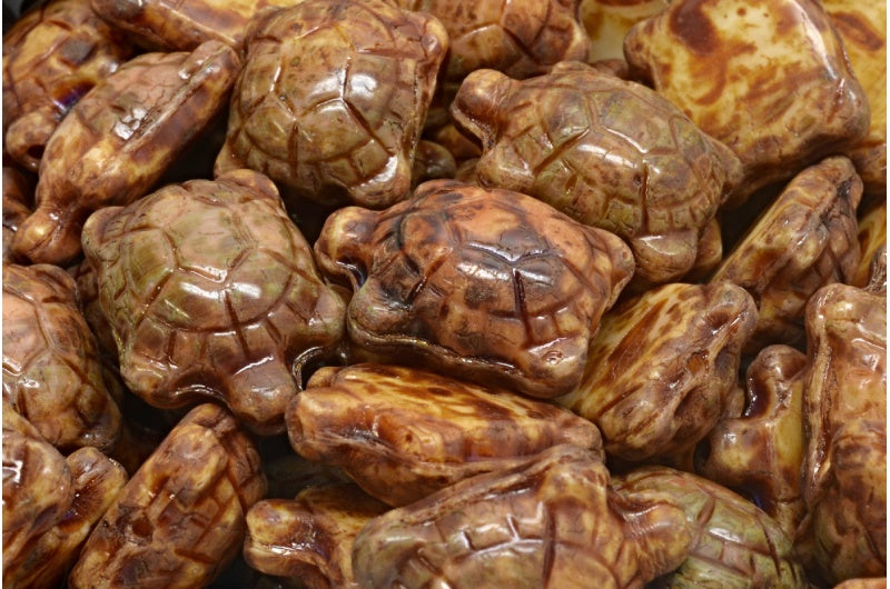 タートルビーズ、R1374 トラバーチン(R1374-86800)、ガラス、チェコ共和国