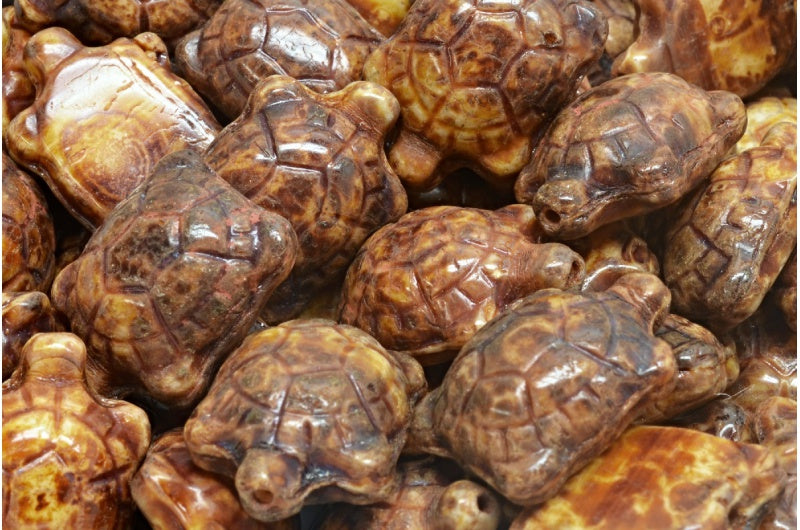 タートルビーズ、R2107 トラバーチン(R2107-86800)、ガラス、チェコ共和国