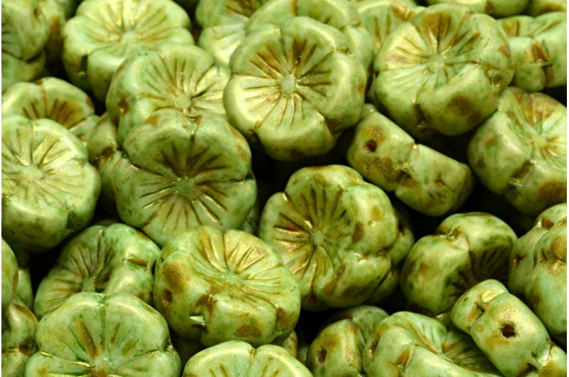 ハワイアンフラワービーズ、ホワイトブラウンラスタースポット(02010-65326)、ガラス、チェコ共和国
