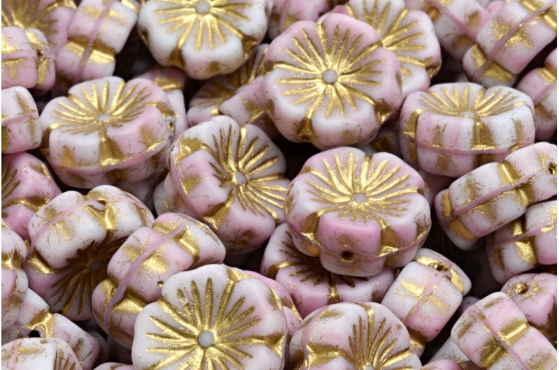 ハワイアンフラワービーズ、ピンクゴールドライン(07724-54302)、ガラス、チェコ共和国