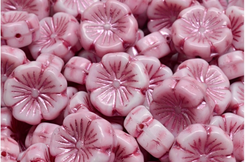 ハワイアンフラワービーズ、ピンクピンクライン(07724-54321)、ガラス、チェコ共和国