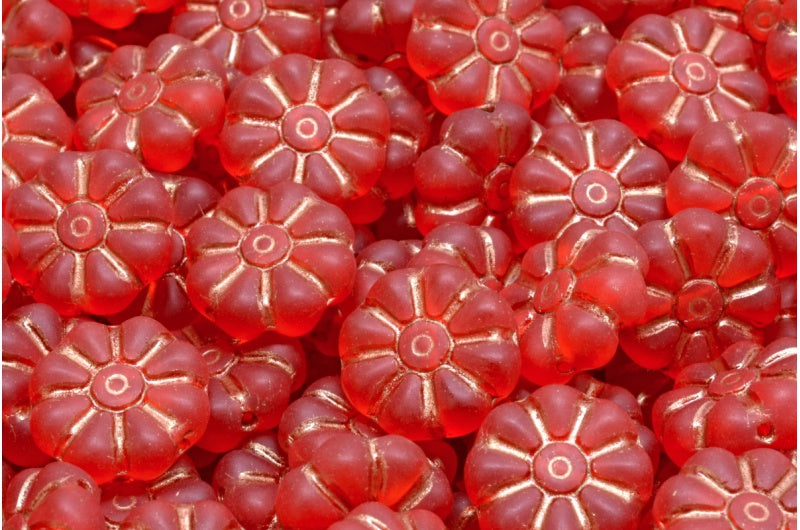 アスタリスクフラワービーズ 12x12、透明レッドマット 43805 (90050-84100-43805)、ガラス、チェコ共和国