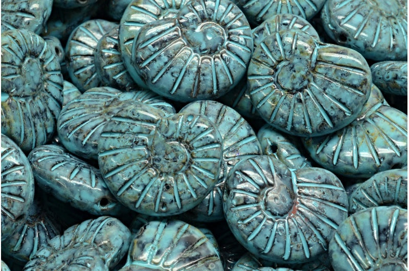 シェルビーズ、ブラックトラバーチンターコイズスポット(23980-86800-33309)、ガラス、チェコ共和国