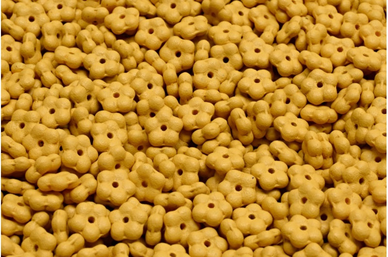 忘れな草ビーズ、ホワイトブライトダークイエローマット(02010-22M03)、ガラス、チェコ共和国