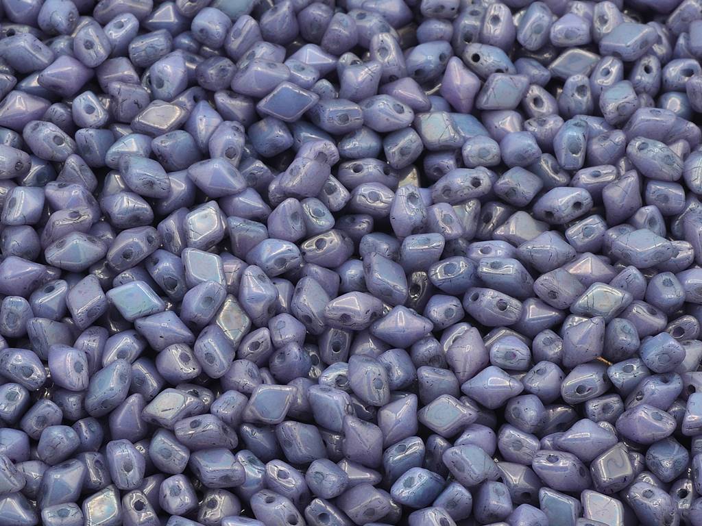 Diamonduo 2穴ビーズ ロンバス ジェムデュオ、チョークホワイトパープル (03000-15726)、ガラス、チェコ共和国