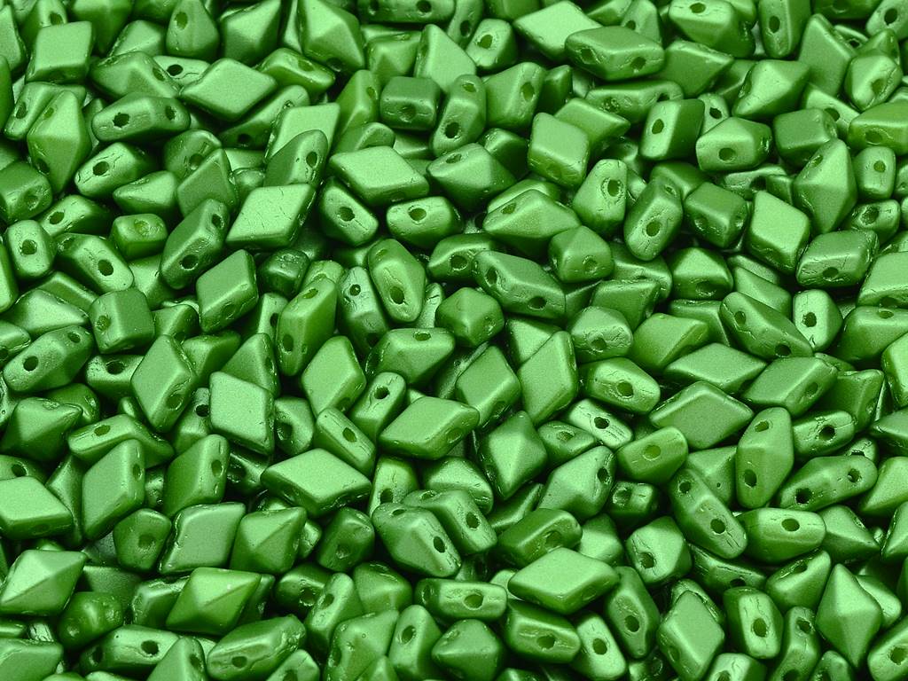 Diamonduo 2穴ビーズ ロンバス ジェムデュオ、オリーブにチョークホワイトレーザーエッチング装飾 (03000-25034)、ガラス、チェコ共和国