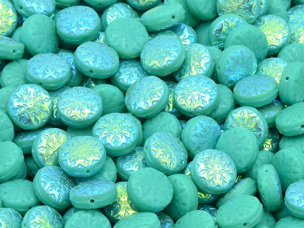 雪の結晶デザインのビーズ2、ターコイズAb(63130-28701)、ガラス、チェコ共和国