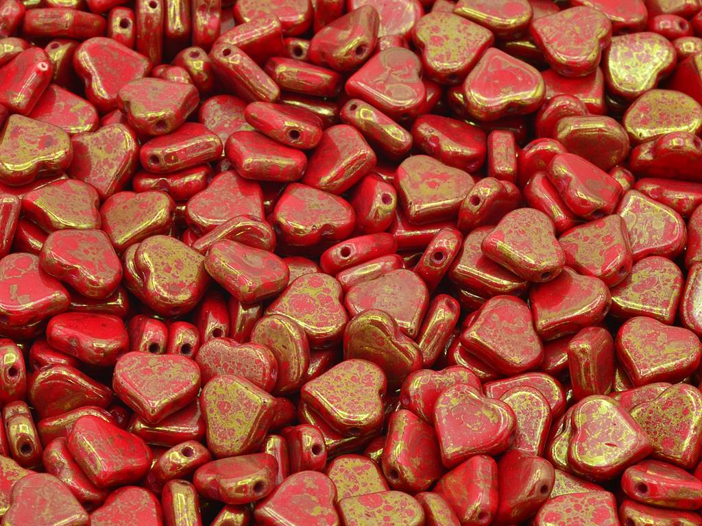フラットハートビーズ サイドホール、不透明レッドテラコッタレッド (93200-15495)、ガラス、チェコ共和国