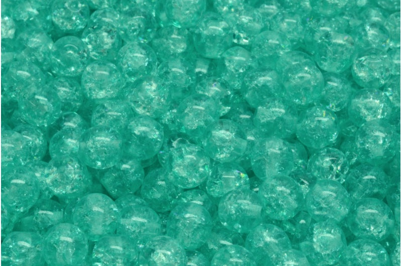ラウンドドラックビーズ、クリスタルクラックライトターコイズ(00030-85500-34309)、ガラス、チェコ共和国