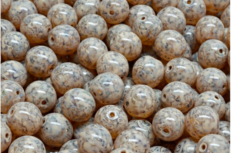 ラウンドドラックビーズ、クリスタルトラバーチンベージュトラバーチンスポット(00030-86800-33301)、ガラス、チェコ共和国