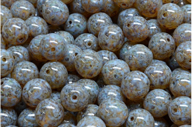 ラウンドドラックビーズ、クリスタルトラバーチンブルースポット(00030-86800-33308)、ガラス、チェコ共和国